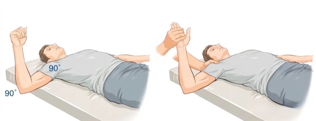 常用于评估肩关节前方不稳定性的测试方法,有助于检测肩关节是否存在前方脱位或亚脱位的倾向。